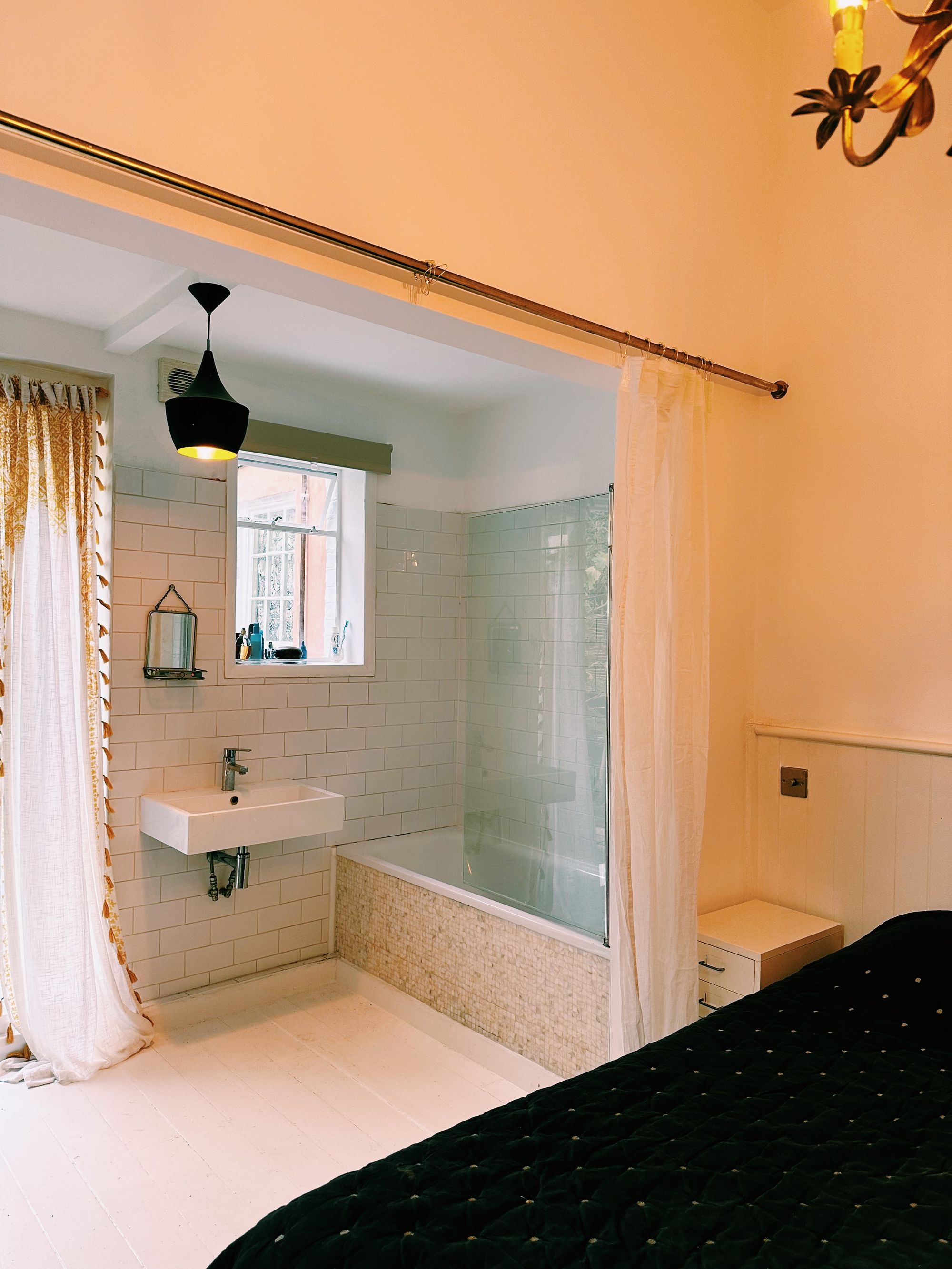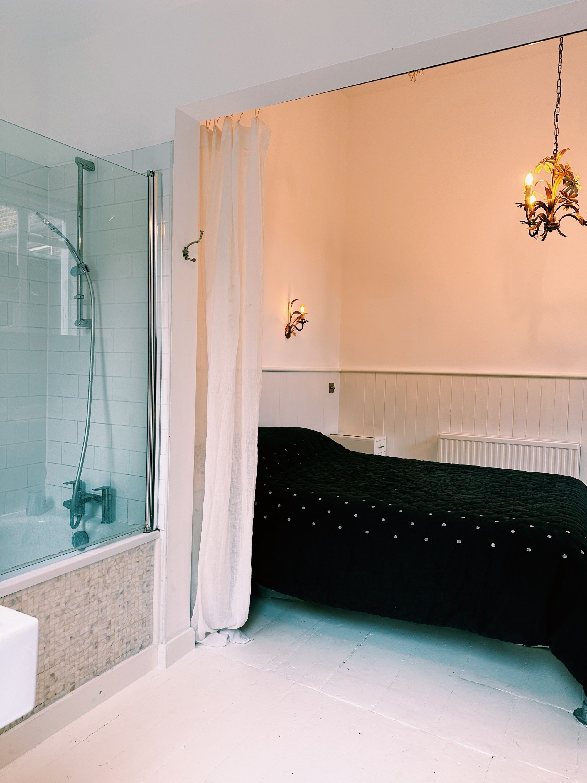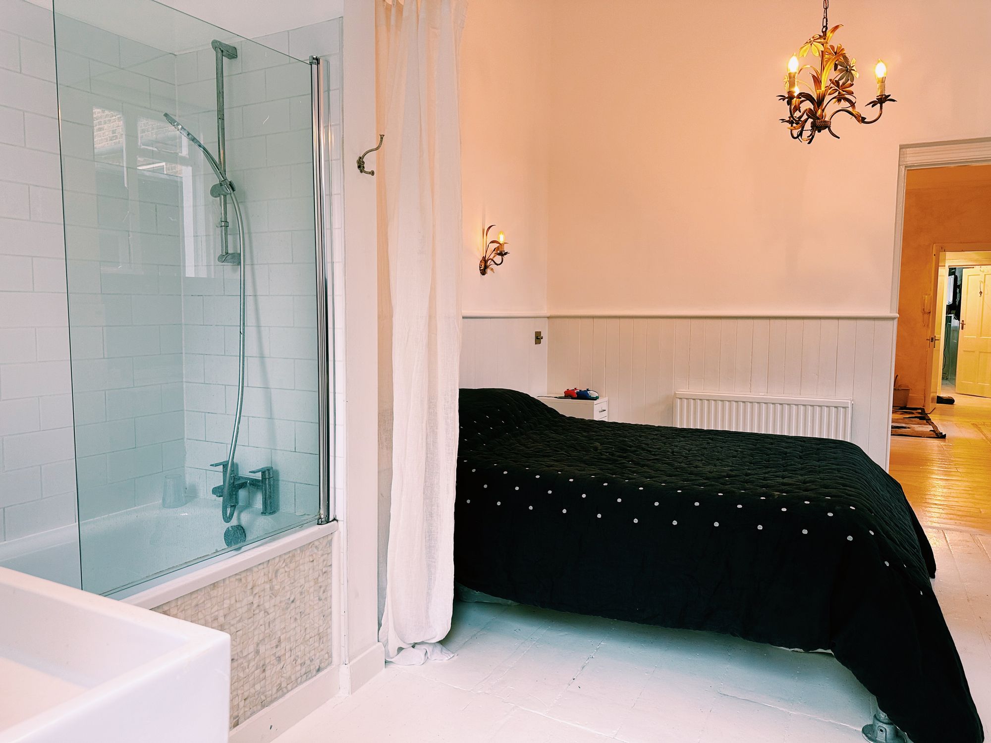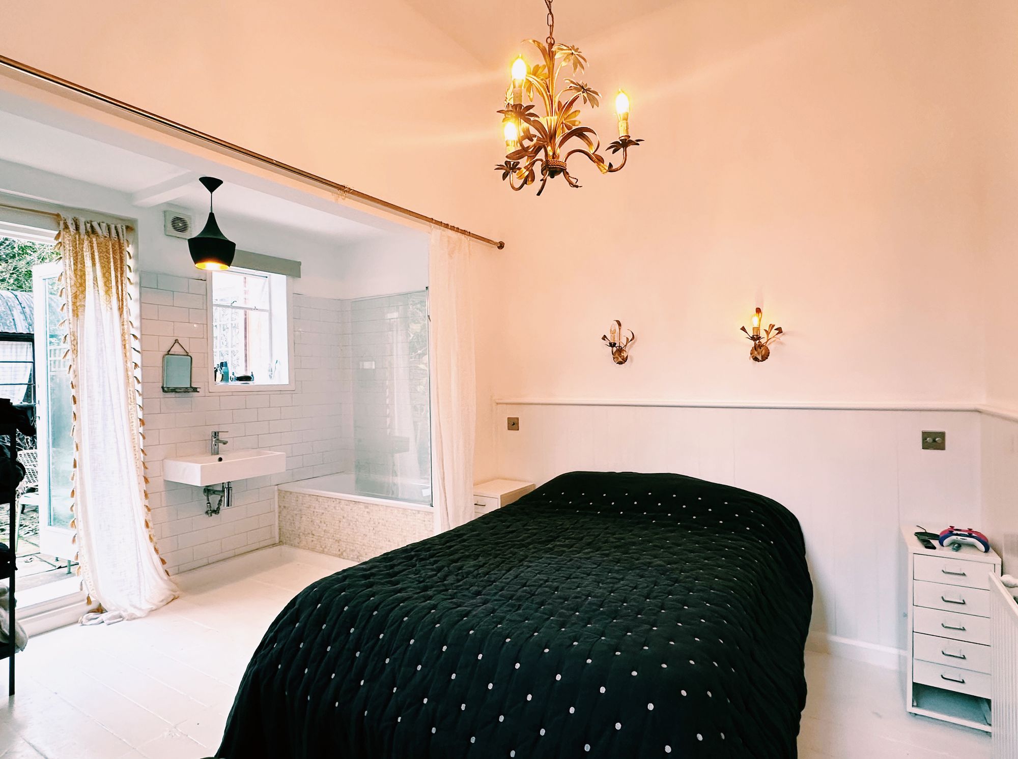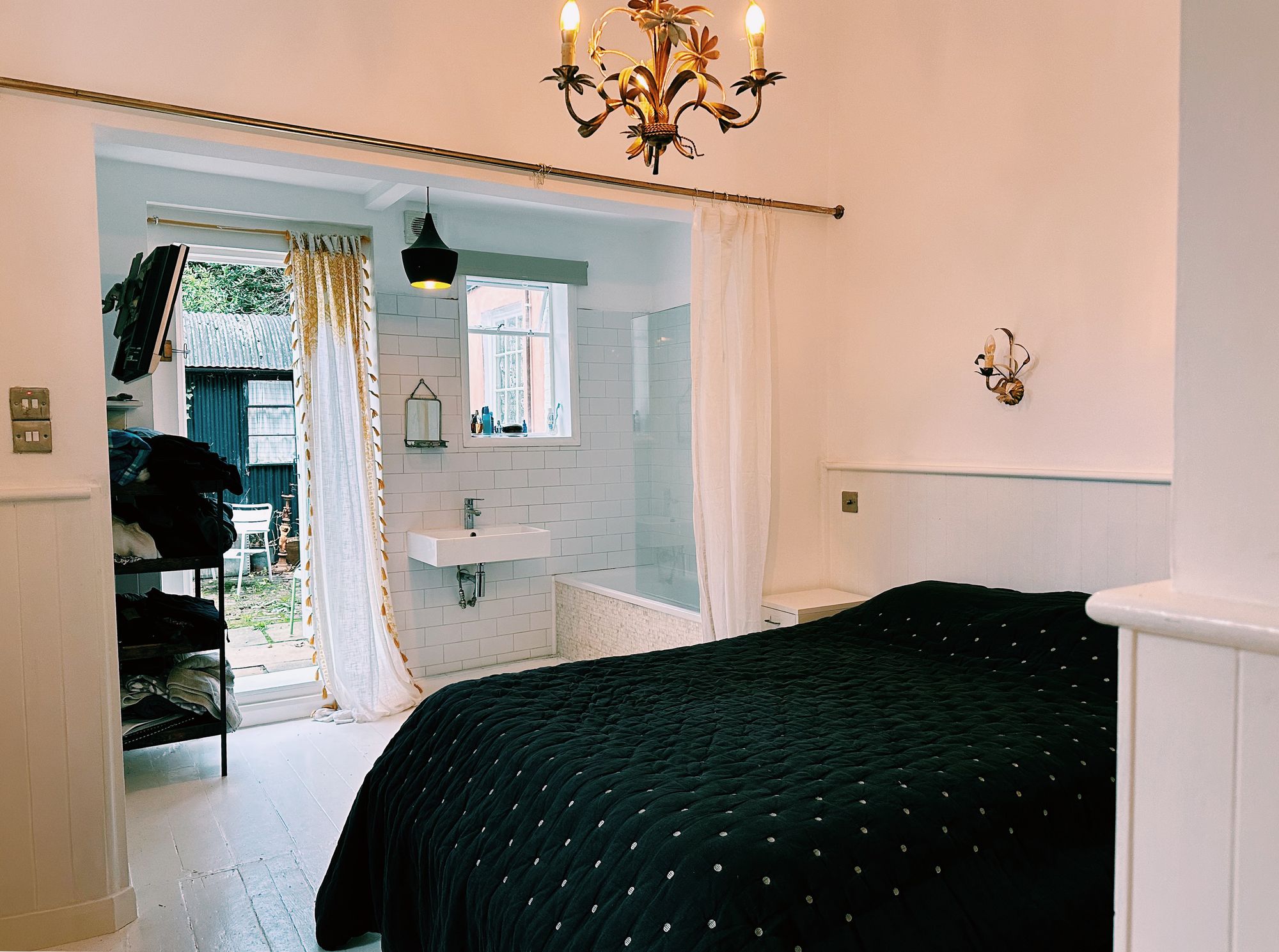 Bedroom 1 is at the front of the property with a fantastic bay window and ensuite shower room. Bedroom 2 has an open plan bathroom with doors leading to a garden.