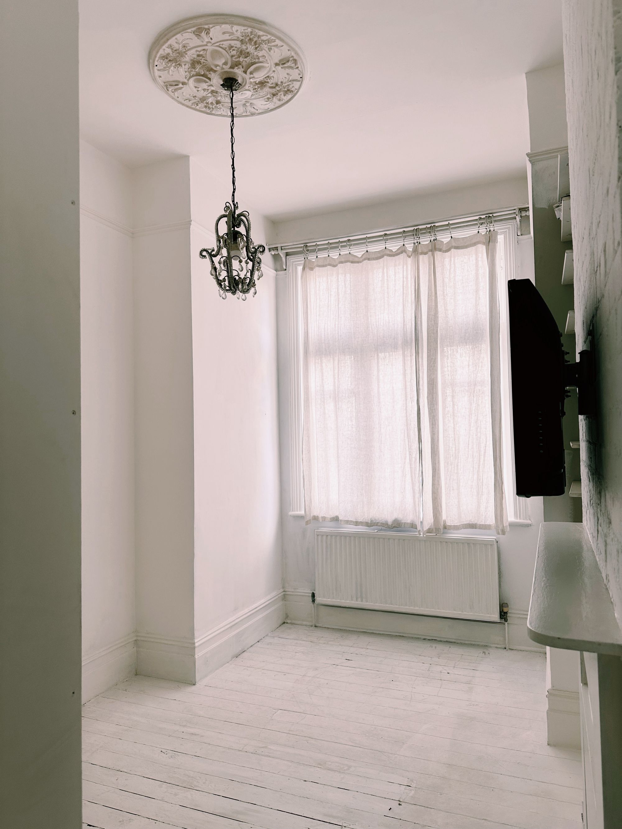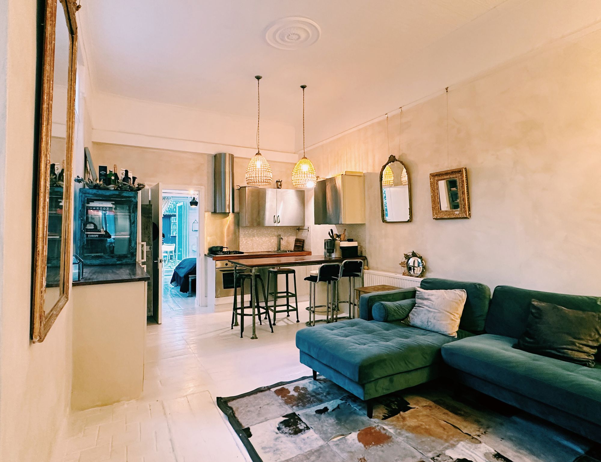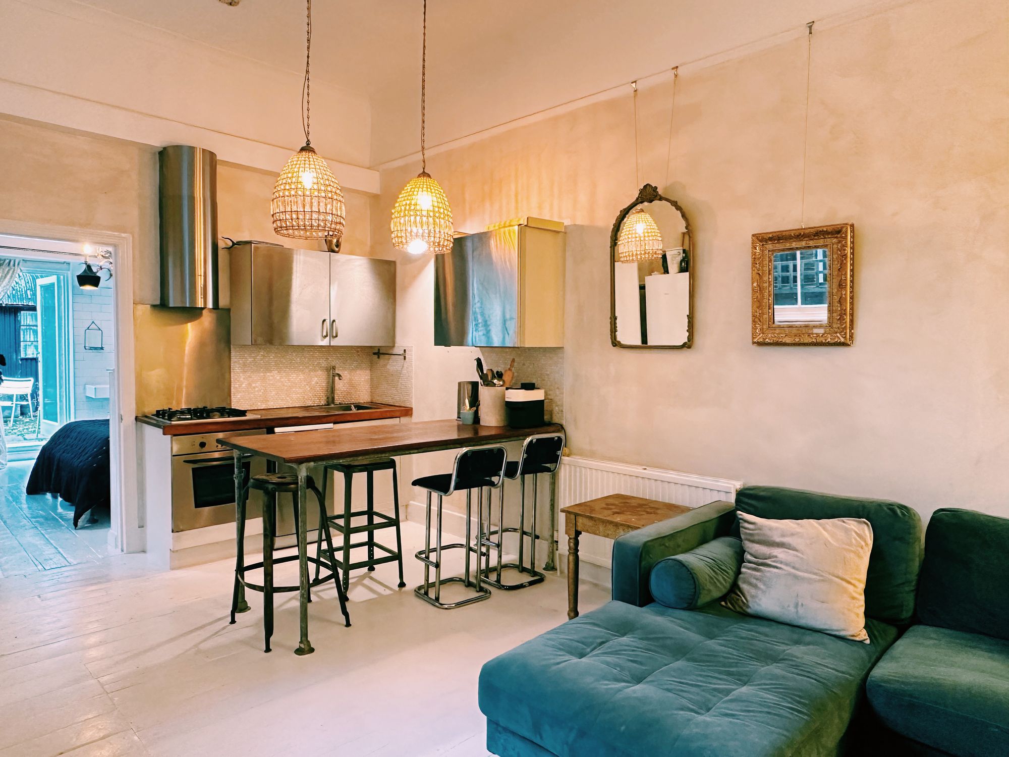 This tastefully refurbished apartment further benefits from white painted wooden flooring, open plan reception/kitchen and a south facing paved garden.