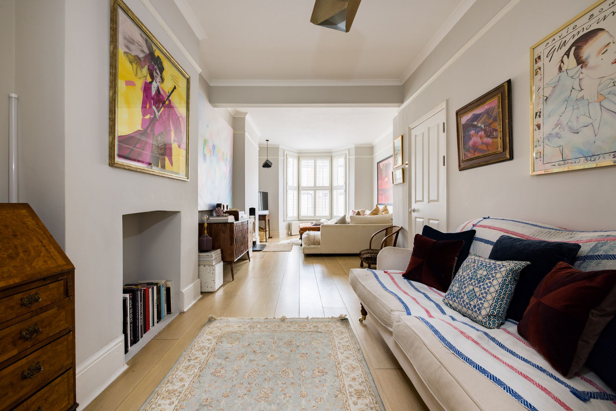 A charming, bright and beautifully presented 1647 sq ft (153 sq m) extended four bedroom family home. Presented in excellent order throughout having been thoughtfully updated by the current owners. Being end of terrace the house benefits from highly practical gated side access to the rear garden. Set back from the street by a front garden the entrance hallway leads to a generous double reception room with bay window and wood burning stove. The extended kitchen dining room is the focal point of the house with exposed steels, large island and separate utility room with WC. Double Crittal doors open to the large c 50’ stepped sunny mature garden. Upstairs the first floor has the master bedroom, guest bedroom, large family bathroom and additional WC. The top floor has been cleverly extended to create third and fourth bedrooms one with feature bi folding glazed doors with views of the garden.