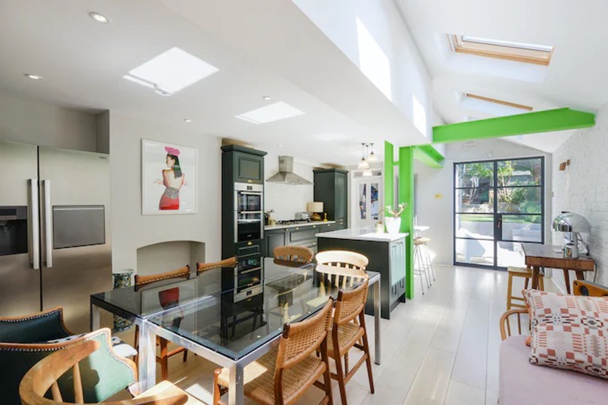 Open plan extended kitchen dining room with separate utility and double doors to garden