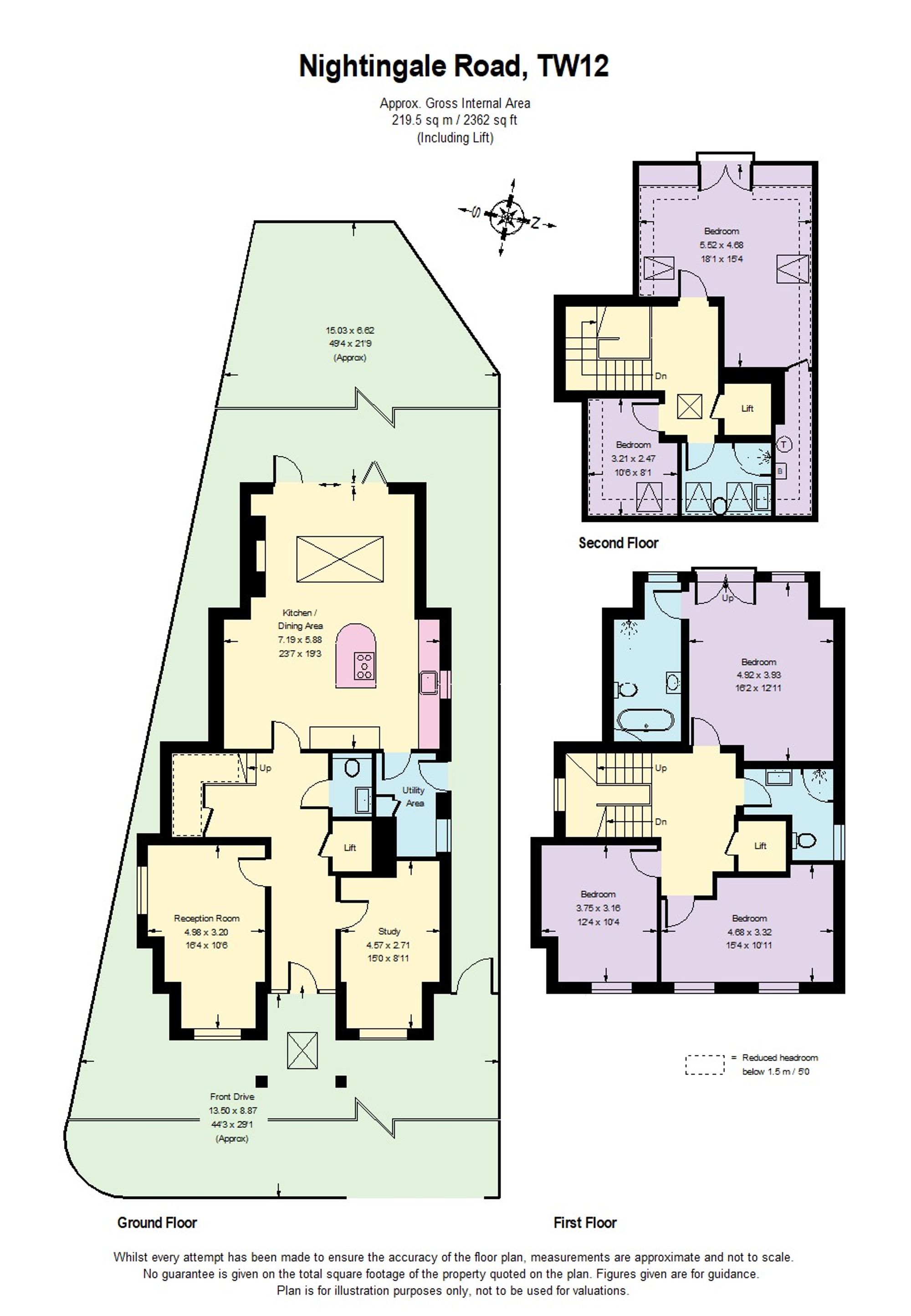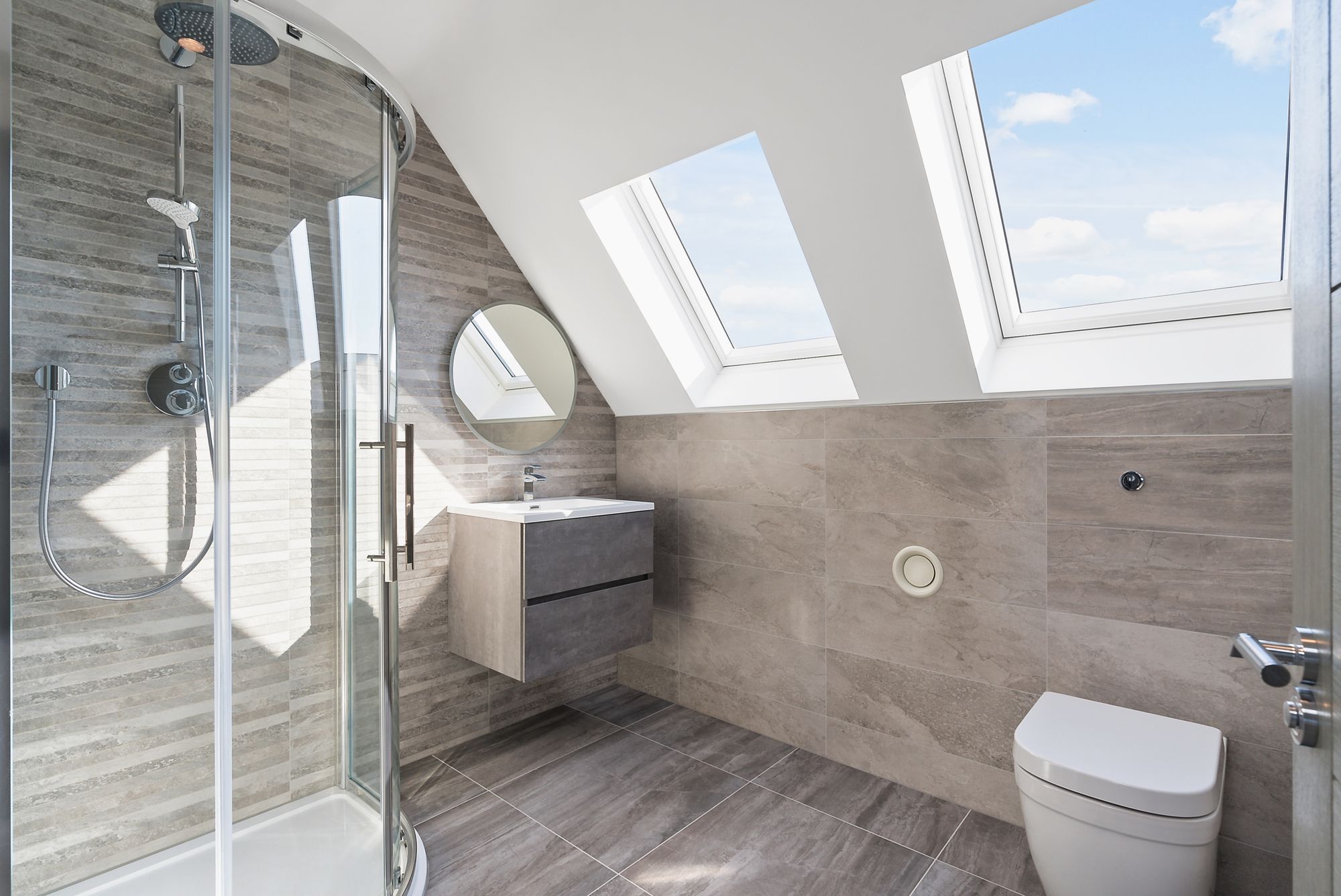 Accommodation is both spacious and versatile, with two elegant reception rooms, a study, utility room, and a series of beautifully finished bathrooms and ensuites, all with large marble-effect porcelain tiles. Comfort is enhanced by underfloor heating throughout and modern conveniences such as an internal lift serving every floor. The house has also been thoughtfully designed to accommodate wheelchair access.