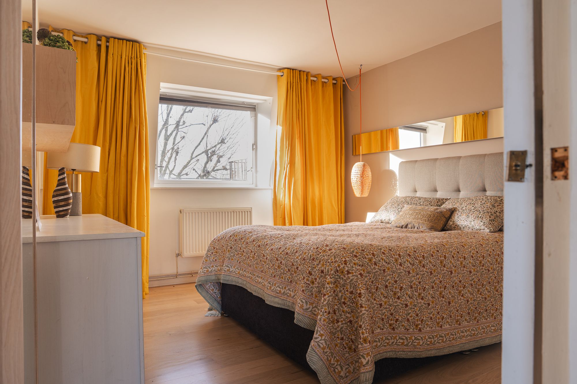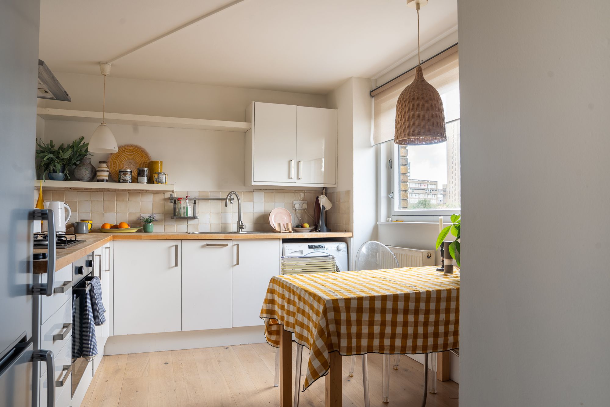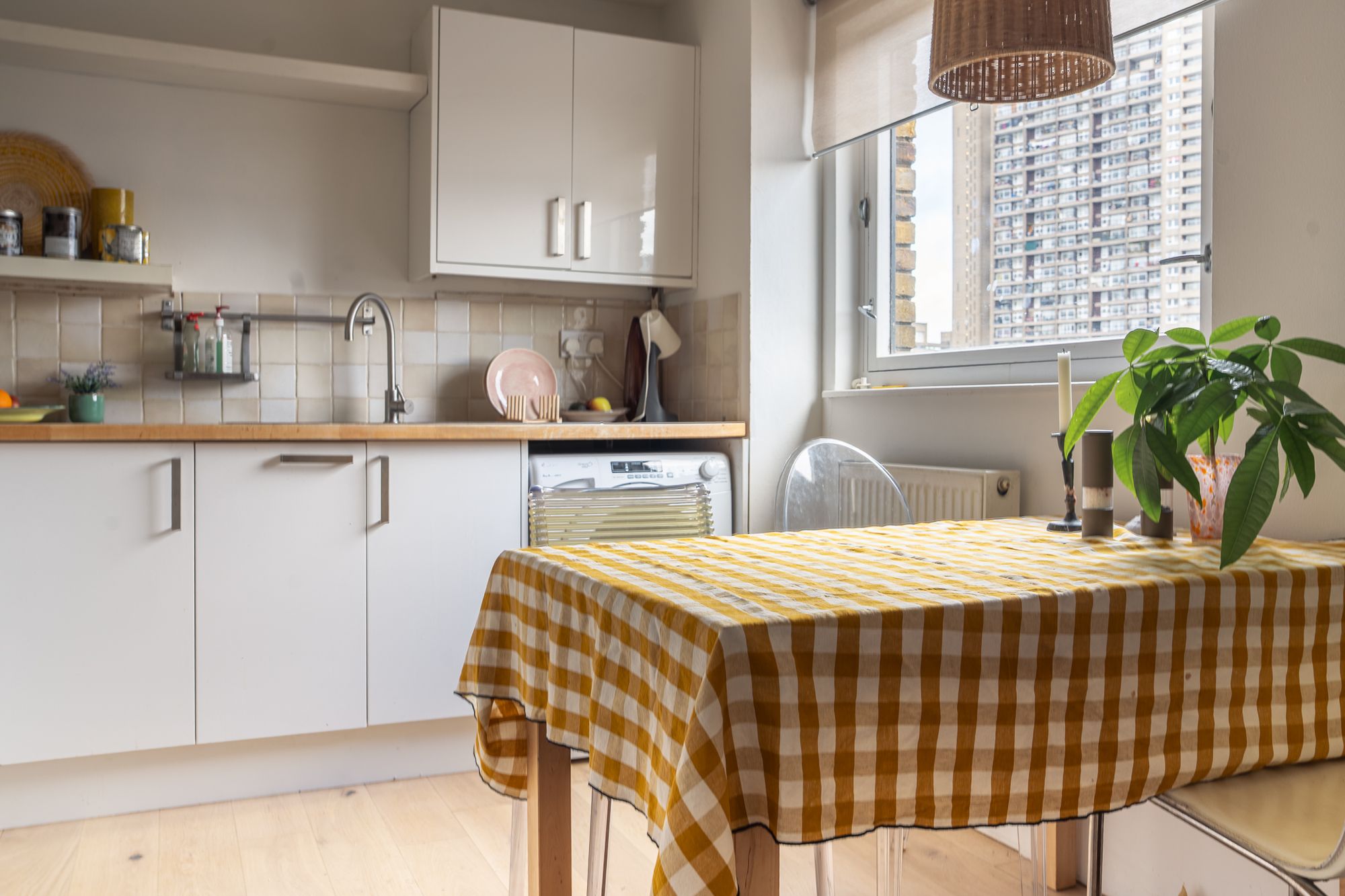 Heading up the stairs and upon entering the home, you are immediately struck by a calm and inviting feel. A lovely first floor reception room, an easy space for both relaxing and entertaining benefits from a pair of French doors opening onto a generous, west facing balcony. The separate kitchen is thoughtfully designed and stylishly finished, creating a natural hub for everyday living, with a picture like window, framing the Iconic Trellick Tower to the rear.