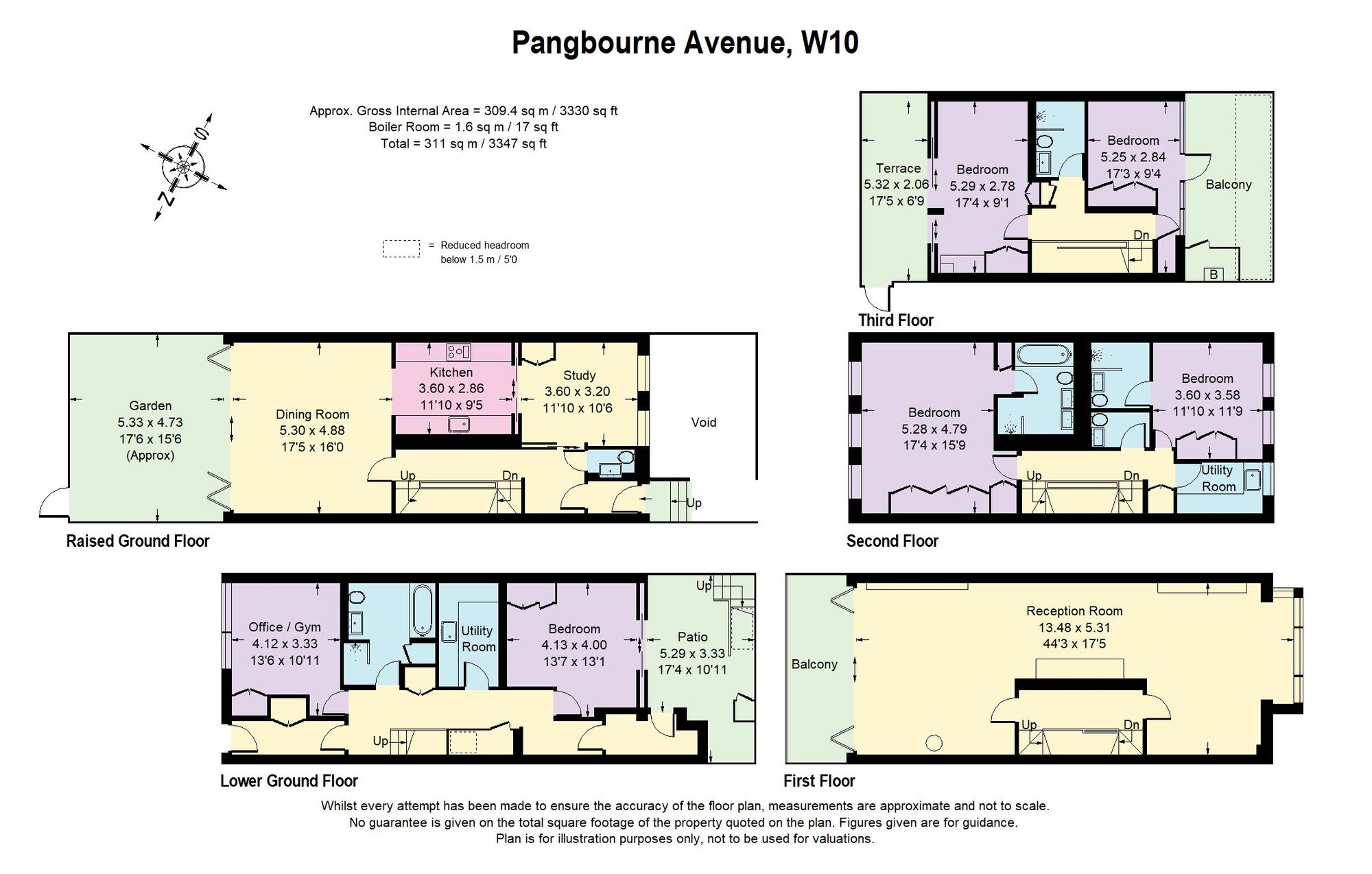 5 bedrooms, 4 bathrooms, study/home office and gym/bed 6