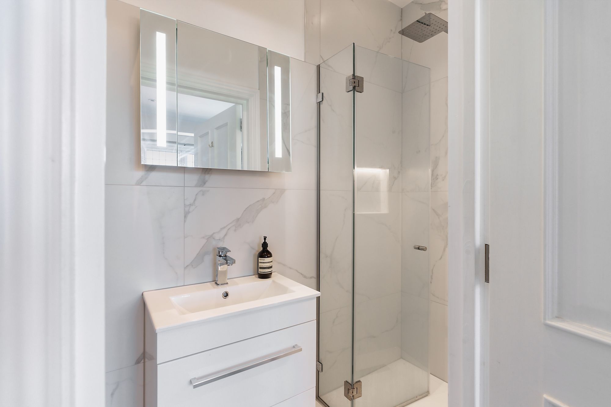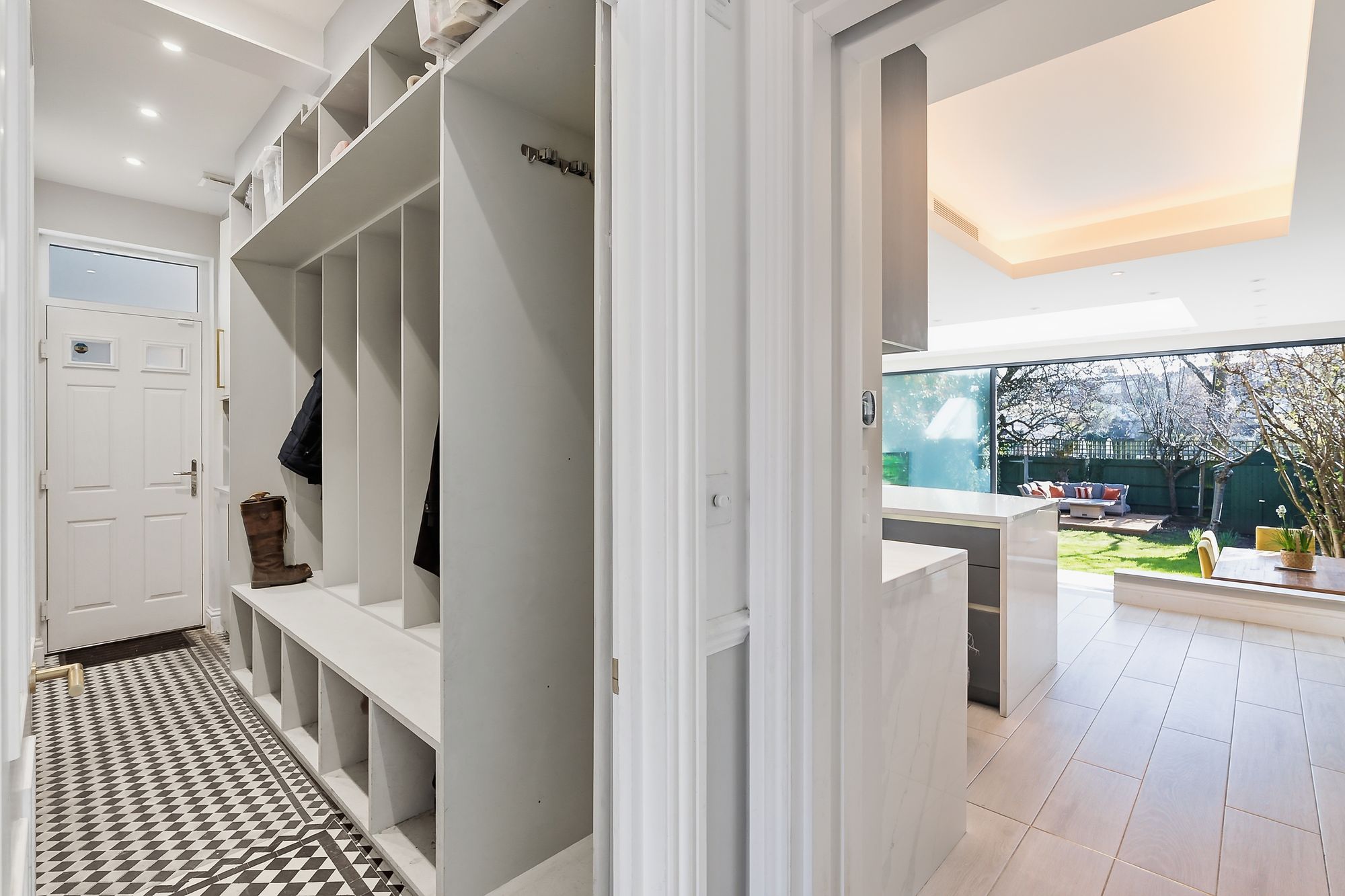 The house itself blends period character with a really well thought-through modern finish. Original floor tiles in the hallway, a lovely front reception with feature lighting and a new gas fire, and then at the rear it completely opens up.