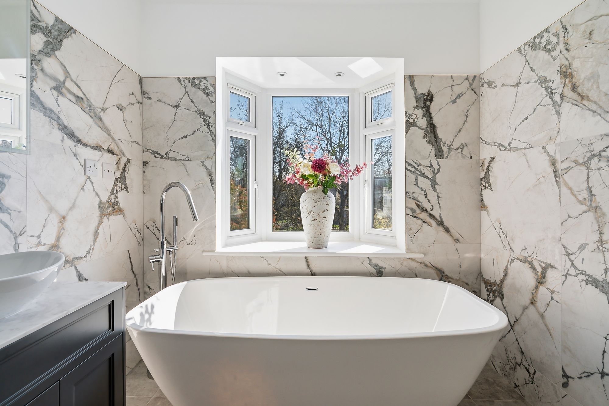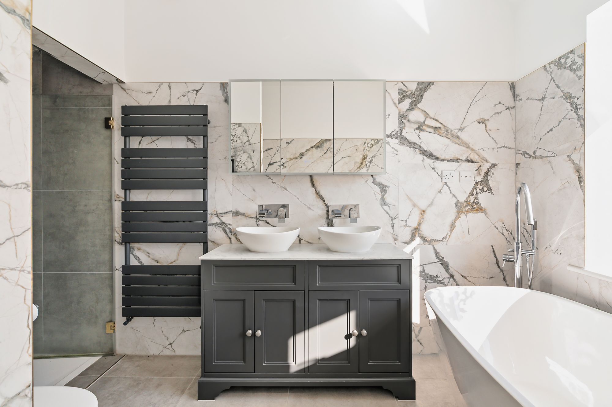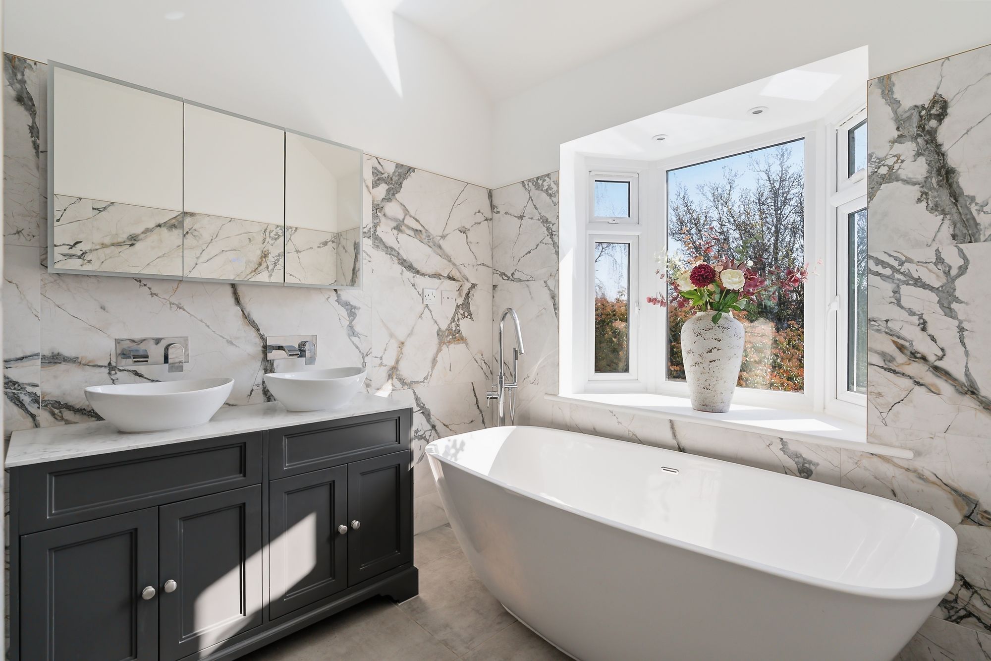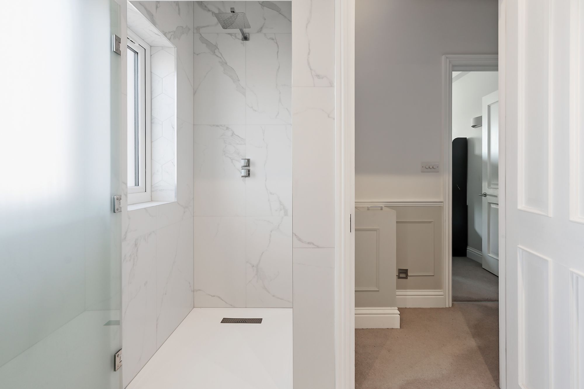 Upstairs, the principal suite feels like its own space—great storage, green views to the rear, and a high-spec bathroom with double shower, large bath, underfloor heating, and integrated speakers. There’s also a further double bedroom with its own ensuite shower room, along with a single bedroom/study—ideal as a nursery, home office, or guest space.