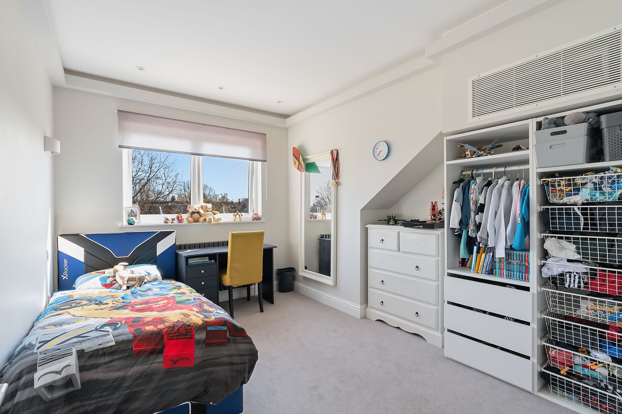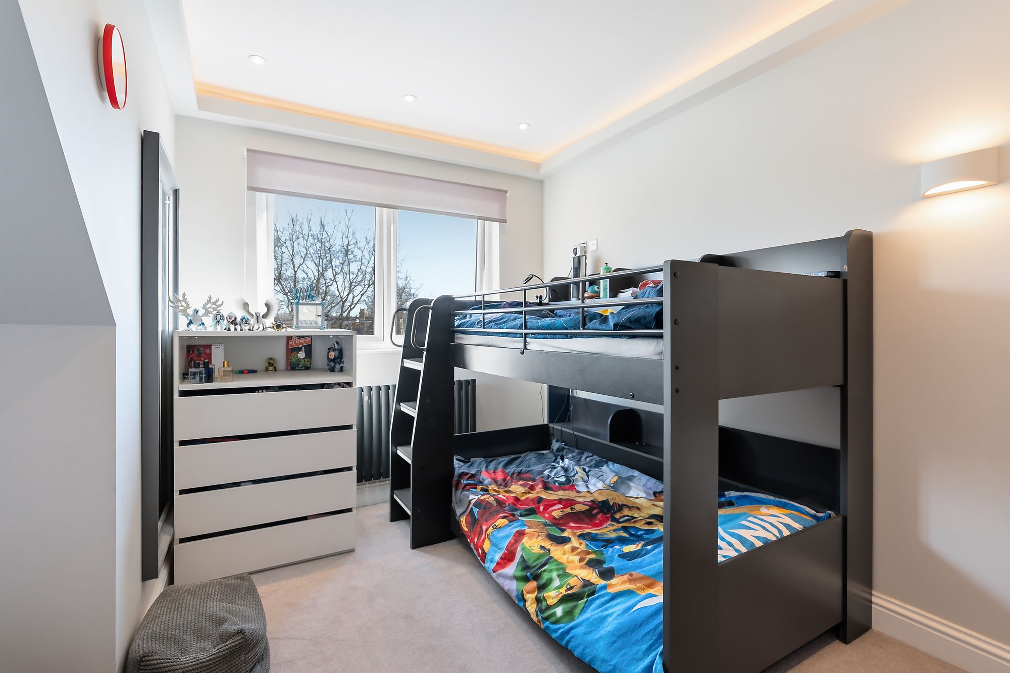 There’s a separate children’s floor (soundproofed), again with built-in storage and a generous family bathroom, plus a proper upstairs laundry room with chute—one of those details that just makes life easier.
