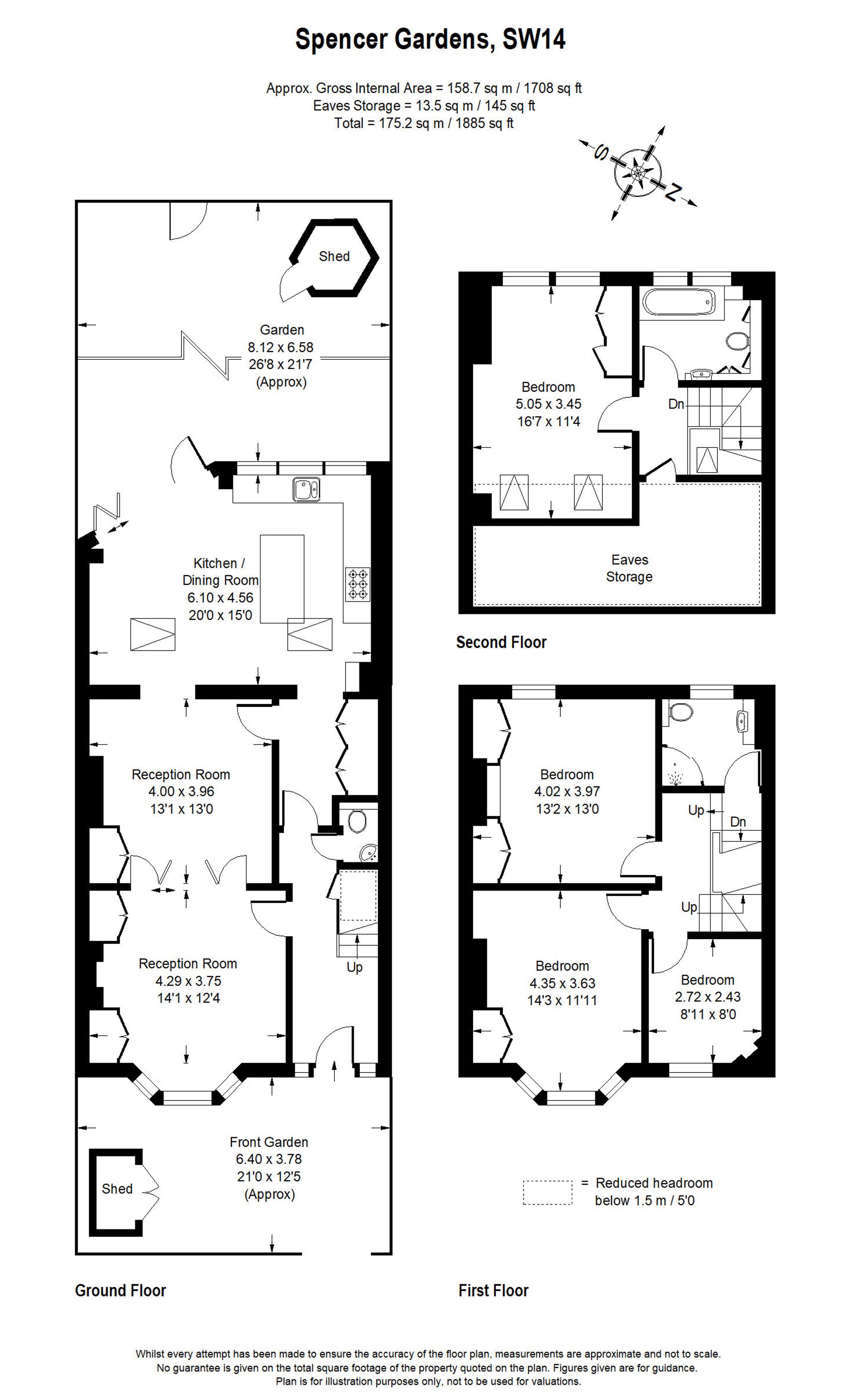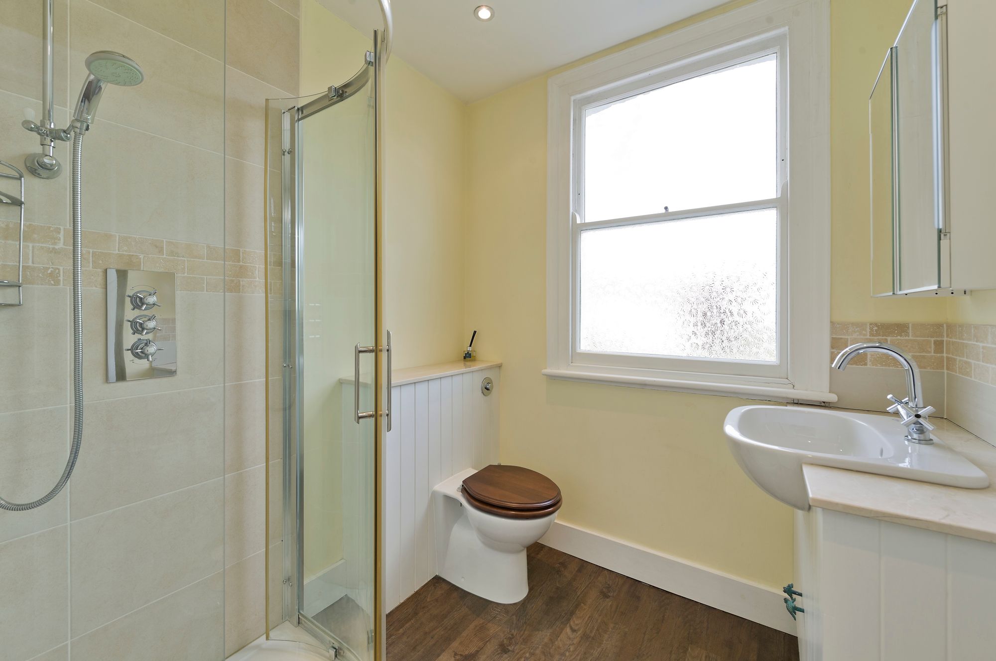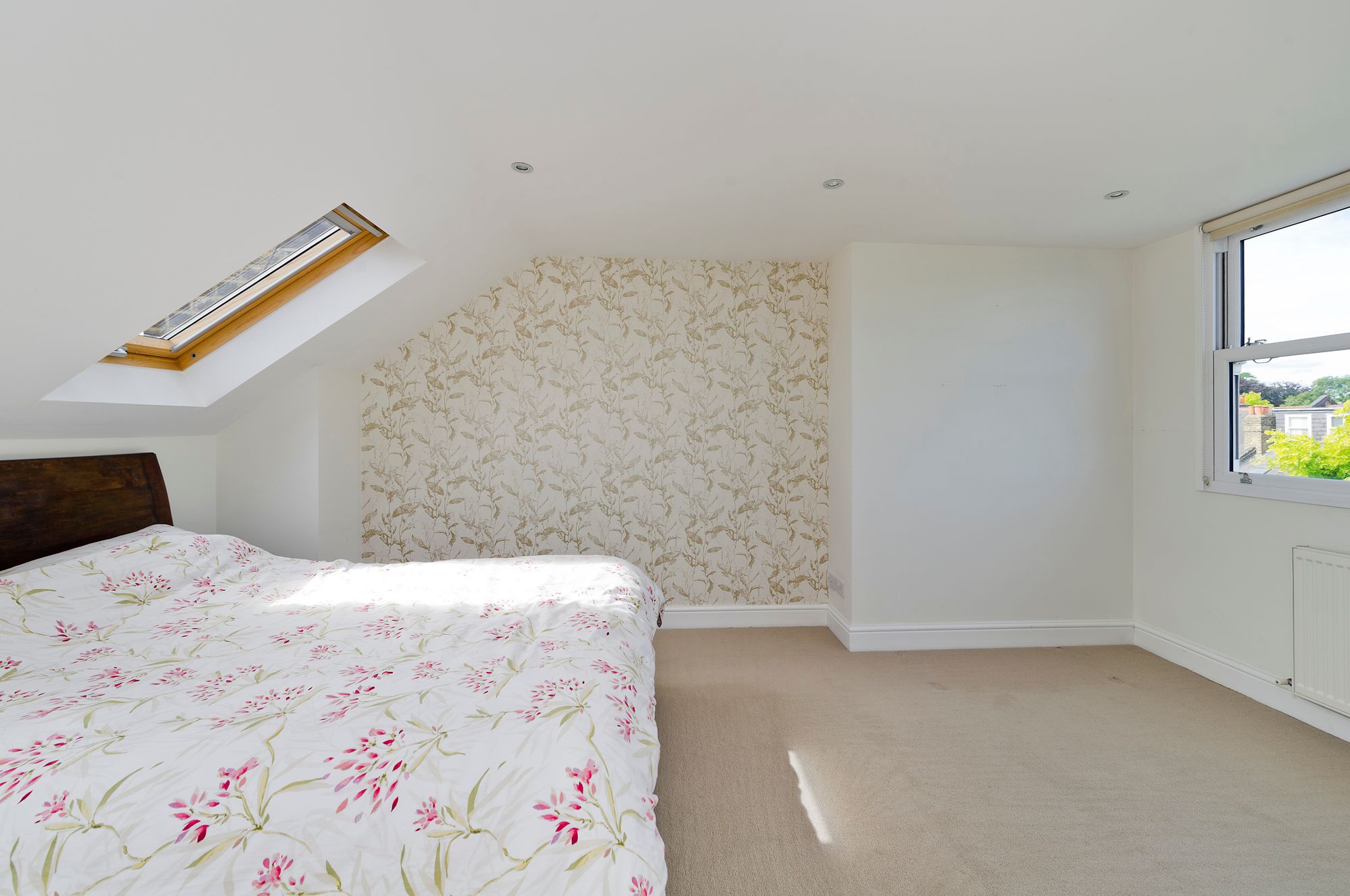 Upstairs, the first floor has two generous double bedrooms with fitted wardrobes, a single bedroom/study, and a modern family shower room on the half-landing. The top floor provides a further double bedroom with fitted wardrobes, a separate bathroom, and excellent eaves storage.
