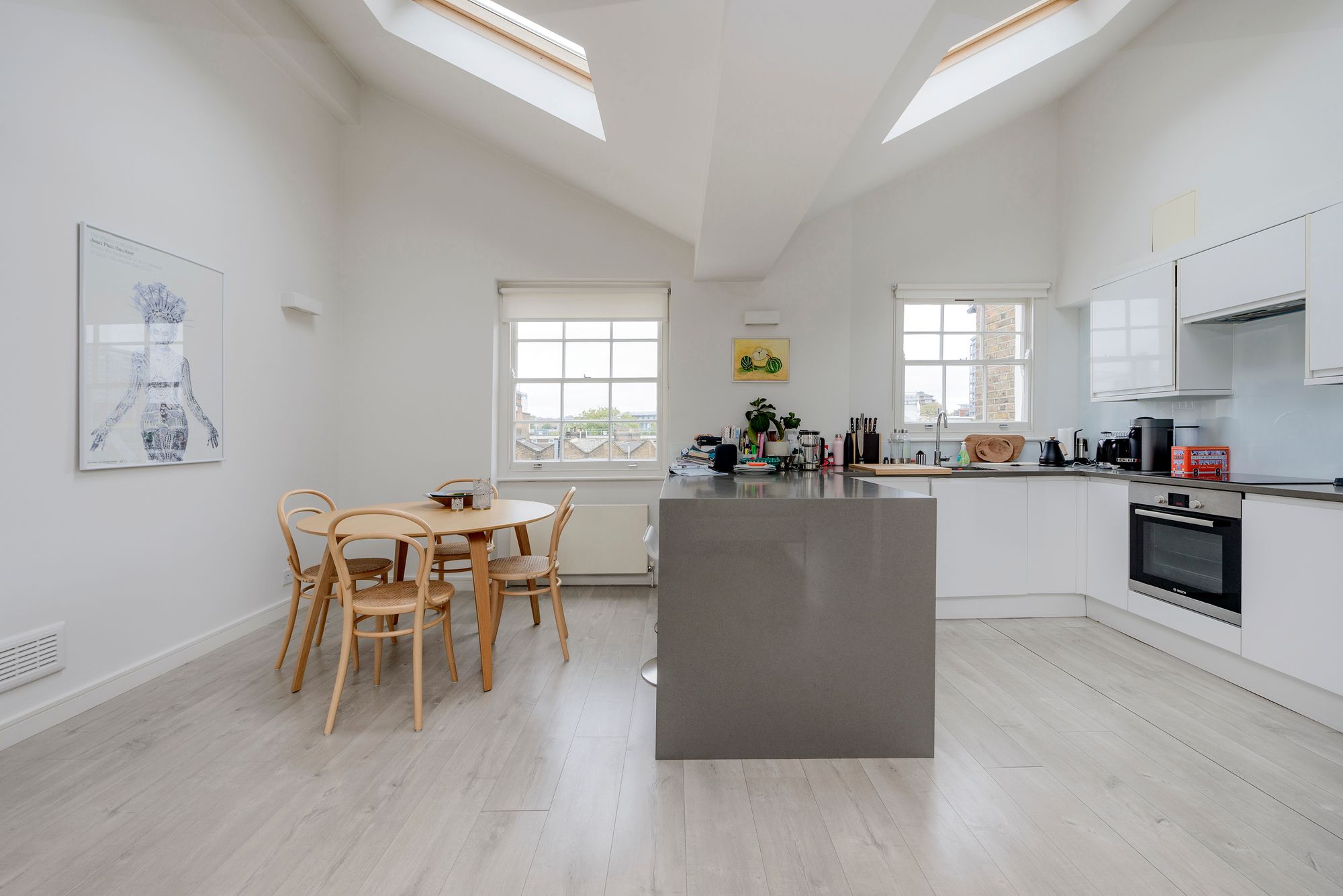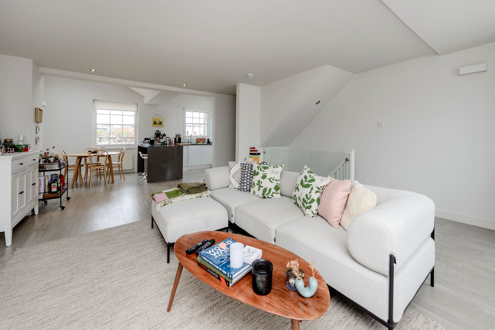 Set across the top of a handsome Notting Hill town house on a quiet cul-de-sac, the home has been refurbished with great attention to detail. The open-plan kitchen and reception is bathed in natural light from two aspects, creating a striking space for both everyday living and entertaining. A secluded decked terrace extends from the apartment, offering privacy and calm above the surrounding streets.